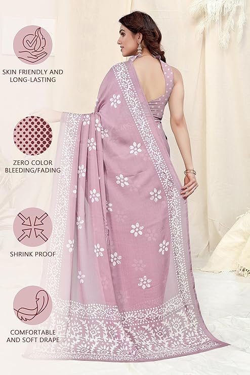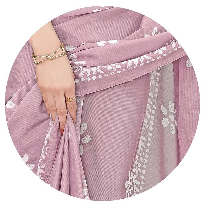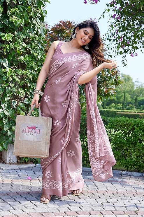 Looking for a lightweight, elegant saree that’s perfect for festivals, parties, and office wear? The MIRCHI FASHION Women’s Chiffon Batik Printed Saree with Blouse Piece is the ideal blend of traditional charm and contemporary style. Made from premium chiffon fabric, this saree drapes beautifully, offering a graceful and comfortable fit. The onion pink and white batik print gives it a refreshing look, making it a must-have in every woman’s ethnic wardrobe.
