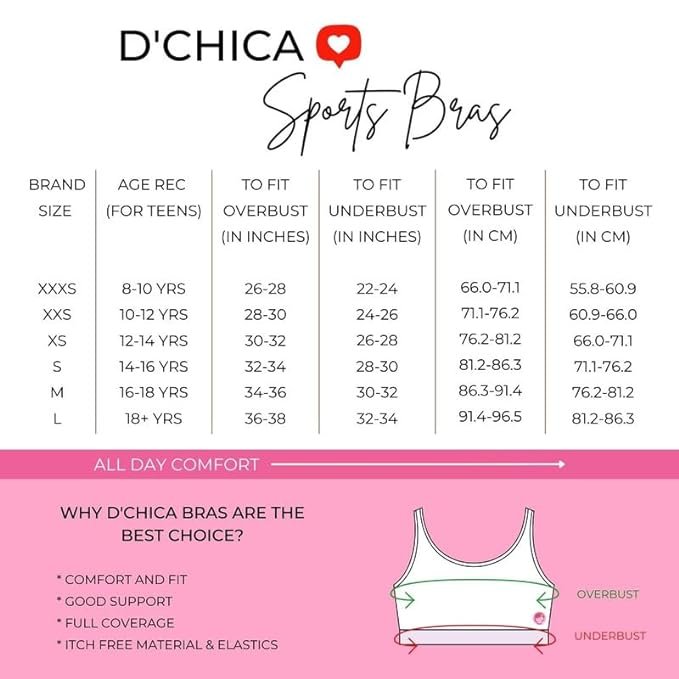 If you’re looking for a high-quality, comfortable, and supportive sports bra for teenage girls, the DChica Sports Bra (Pack of 2) is a perfect choice. Whether for workouts, school sports, yoga, or daily wear, this soft, breathable, and full-coverage sports bra ensures a secure fit and ultimate comfort.