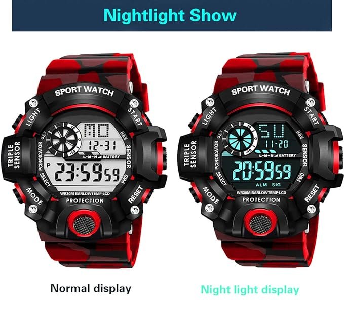 Equipped with a high-performance battery, this digital sports watch offers extended power backup, and the LED nightlight ensures clear visibility even in low-light conditions.