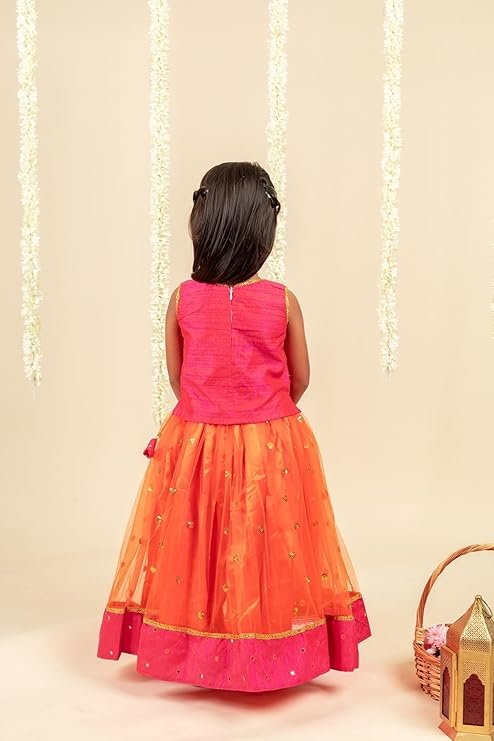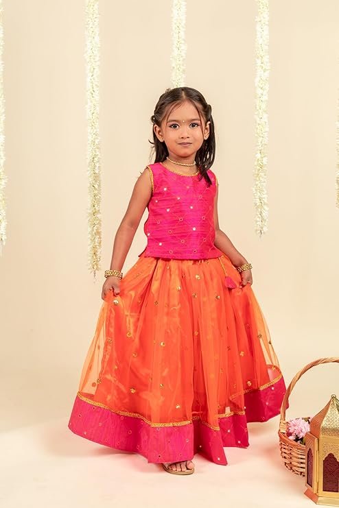 Stanwells Kids Orange & Magenta South Indian Baby Girls’ Lehenga Choli – Traditional & Elegant