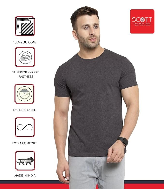 Looking for a stylish, breathable, and comfortable t-shirt for everyday wear? The Scott International Mens Cotton T-Shirt is your go-to choice! Made from 100% high-quality cotton, this men’s plain round-neck t-shirt offers superior comfort, a relaxed fit, and durability. Whether you’re heading to the gym, lounging at home, or going for a casual outing, this cotton t-shirt for men ensures you stay cool and stylish all day long.