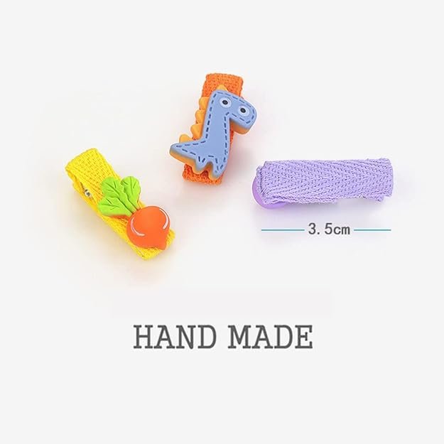 This set comes with 26 different colorful hair clips, featuring adorable cartoon, flower, fruit, and vegetable designs, making it easy to match with any outfit.