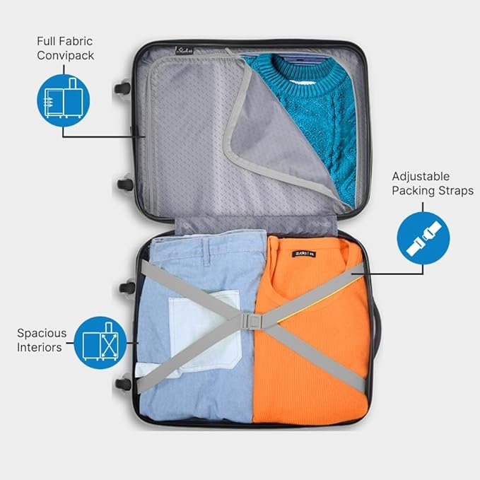 With its sleek design, spacious compartments, security lock, and 360° spinner wheels, the Skybags Trooper 55 cm Cabin Luggage is the ideal travel suitcase. Whether for domestic flights, international travel, or weekend getaways, this lightweight and stylish hard-shell trolley bag makes traveling easy and stylish.