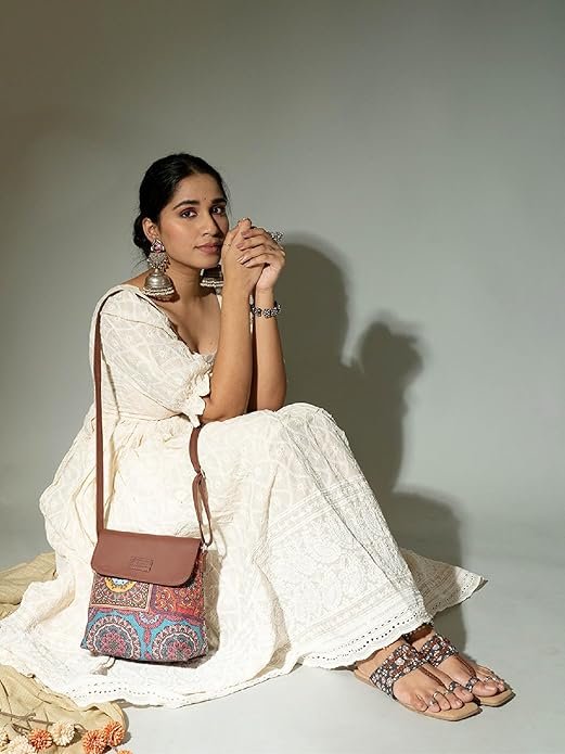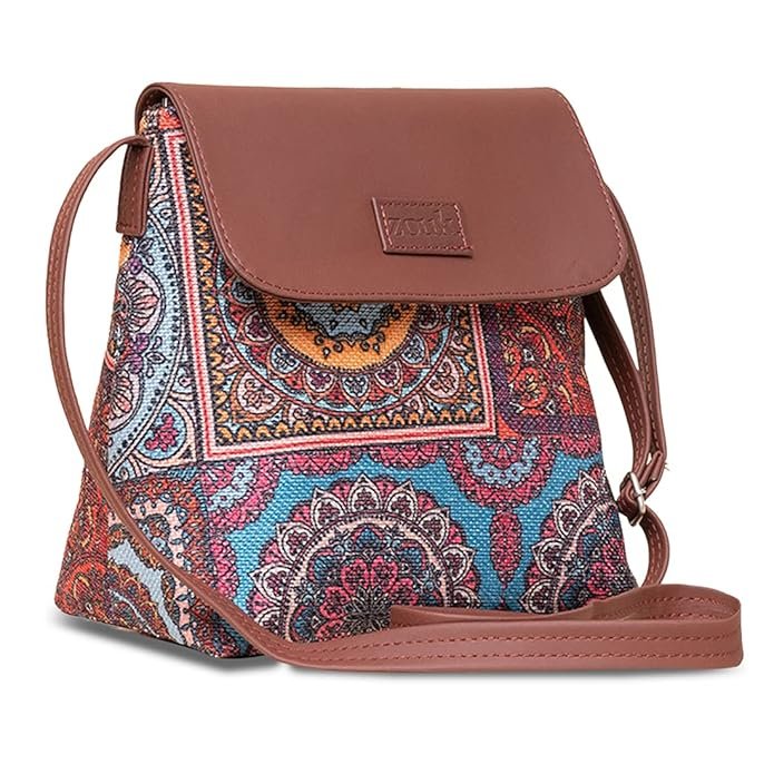 ZOUK Printed Women’s Handcrafted Vegan Leather Flap Sling Bag – Stylish & Sustainable Choice